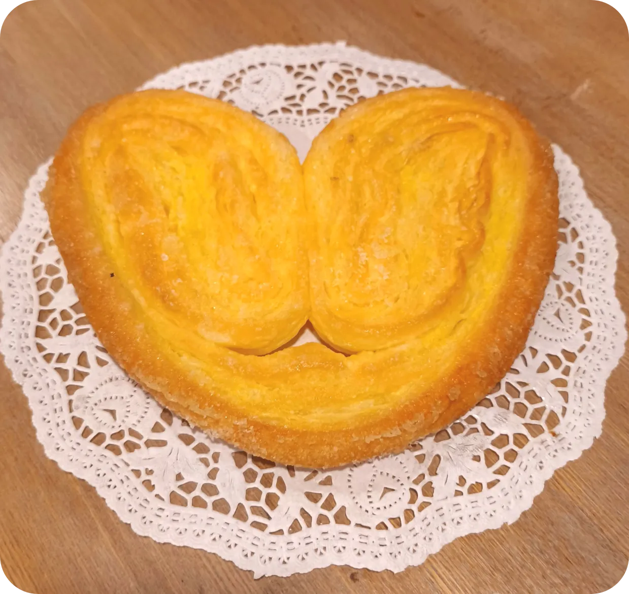 Pieza de hojaldre crujiente horneada recubierta de azúcar. Sin gluten, sin leche y sin lactosa. Peso aproximado 150 gramos.